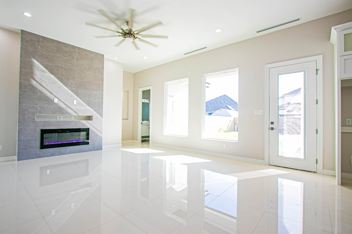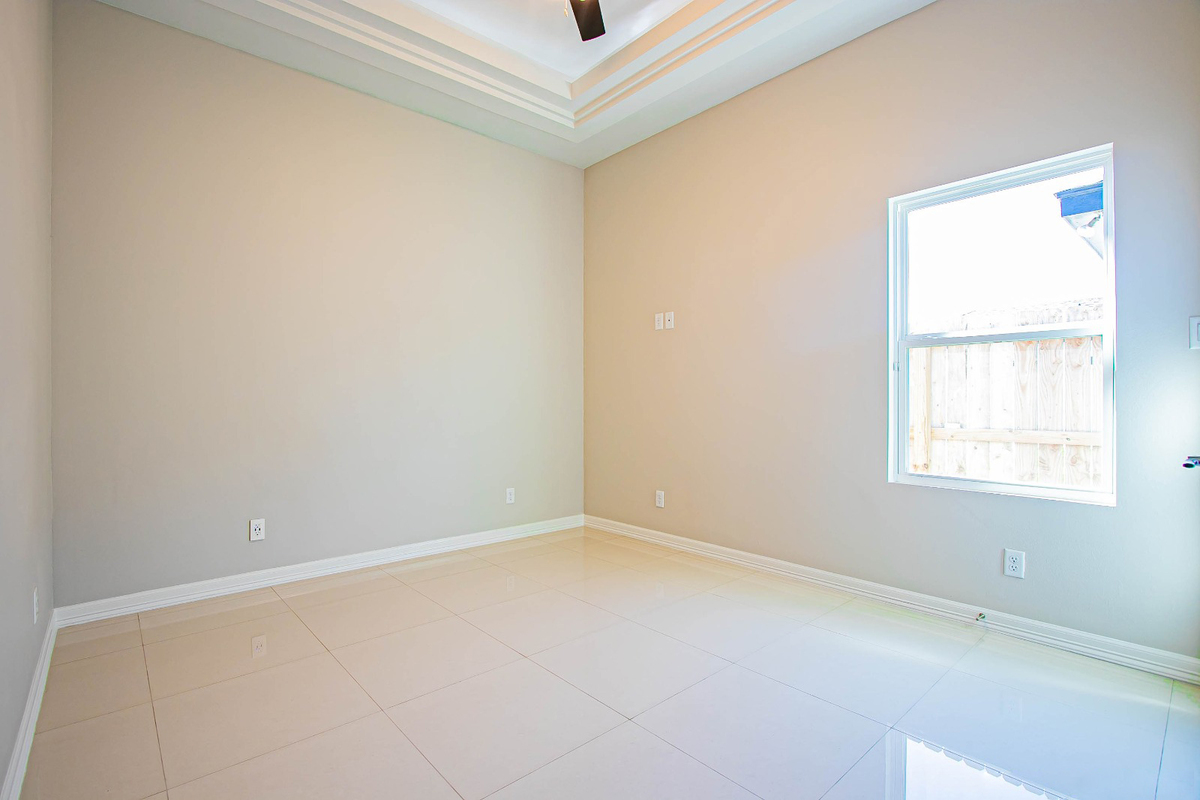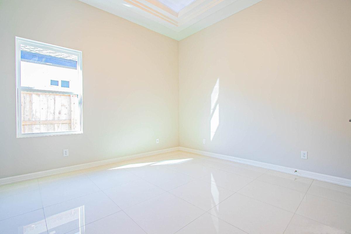 This new home built home is located in the private and gated community of West Oak Estates. It features exquisite modern design and architecture. You walk into the foyer and right into the open space concept living, kitchen, and dining area with three large windows overlooking the back yard to let in the natural light. The flooring is a porcelain tile throughout the house. All three bedrooms have their own full bathroom continuing with the same quartz countertops found in the kitchen.